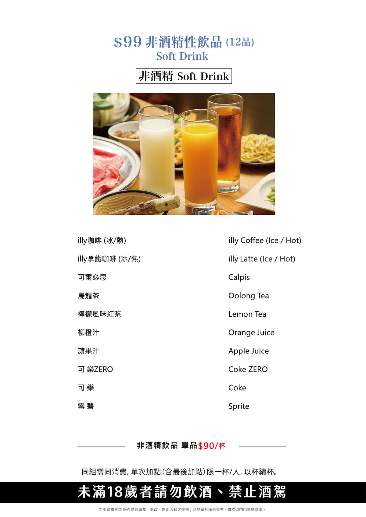 $99非酒精性飲品 (12品)