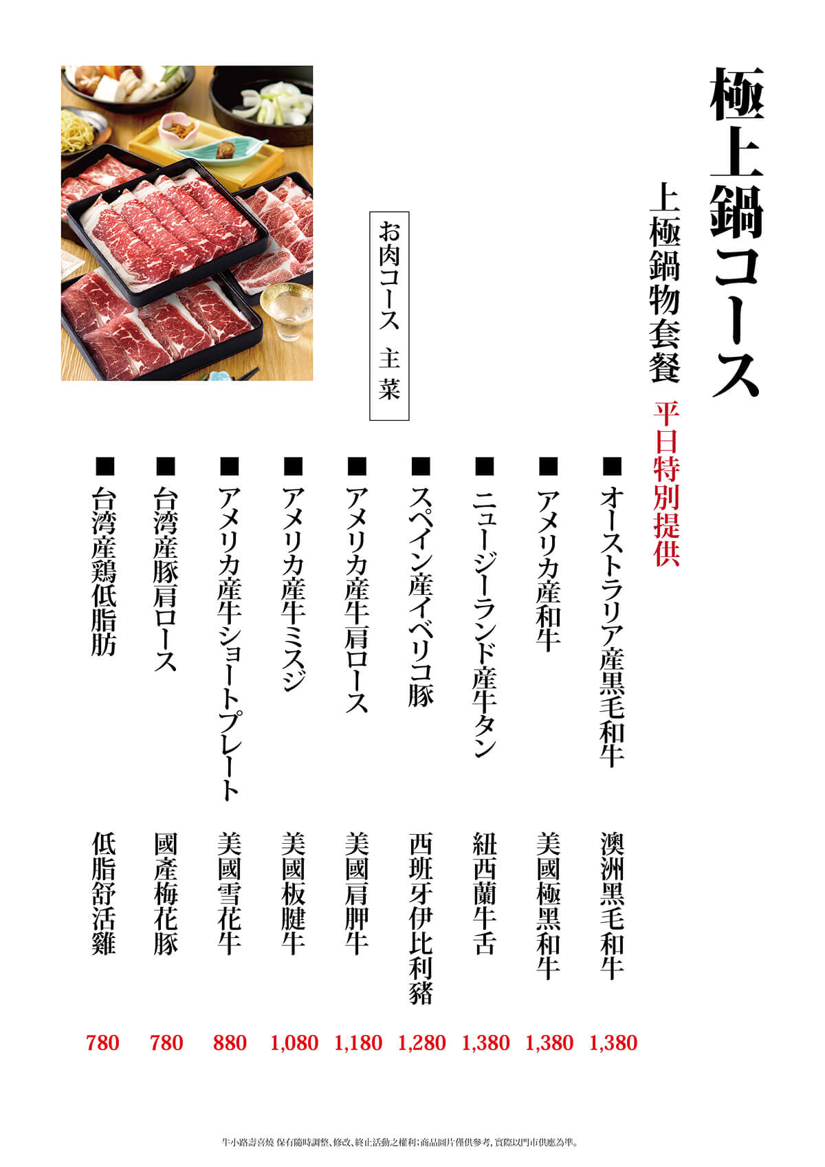 牛小路壽喜燒 保有隨時調整、修改、終止活動之權利;商品圖片僅供參考,實際以門市供應為準。