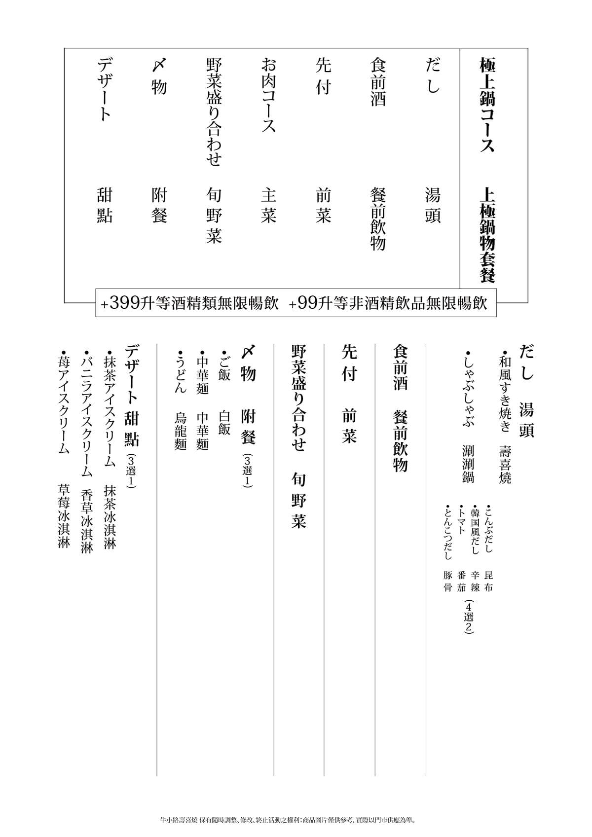 上極鍋物套餐 |